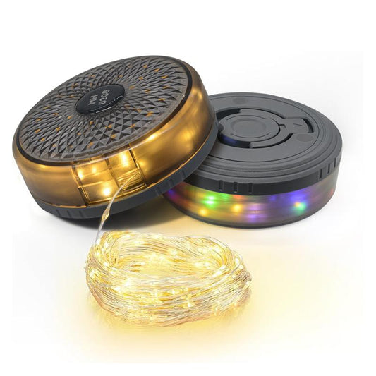 32.8 FT Retractable String Lights 4 in 1 Rechargeable Outdoor Camping String Light with 8 Lighting Modes for Halloween Holiday Christmas Decoration